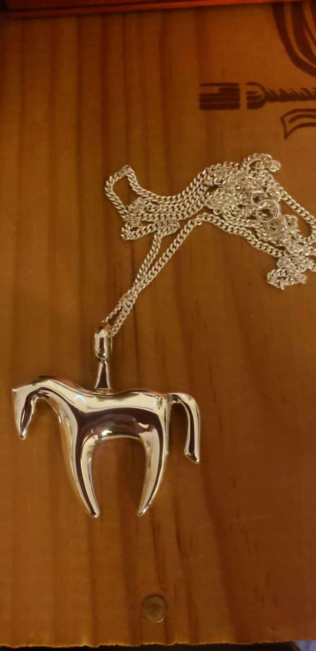 This modern Picasso like interpretation of a Horse's graceful lines is cast in .925 sterling silver with a pleasantly weighty feeling. Great for horse lovers gifts ,horse gifts equestrian jewelry